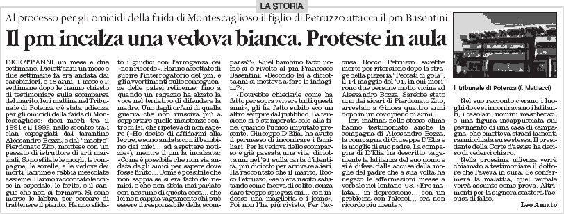 Al processo per gli omicidi della faida di Montescaglioso il figlio di Petruzzo attacca il PM Basentini: