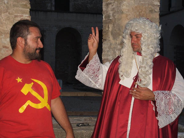 Calorosa e stupefatta accoglienza a Miglionico per la “ Cavalcata “ che ha sfilato il giorno 12 in un evento dedicato al Duca Revertera, feudatario del paese. I tentativi di contestazione dell’evento da qualcuno vissuto come celebrazione del latifondismo, si sono ben presto stemperati con l’esorcismo e la benedizione imposta al reprobo comunista da Sua Eminenza Francesco Franco, il cui cognome di ascendenza spagnola, peraltro è garanzia di lotta senza quartiere ai seguaci di Marx, Lenin, Bertinotti, etc. Tormentata fraternizzazione con la madre badessa, Donna Francesca dell’antica casata Zito, restia, però, a concedere confidenze e conclusione, come sempre in Italia, a tarallucci e vino.