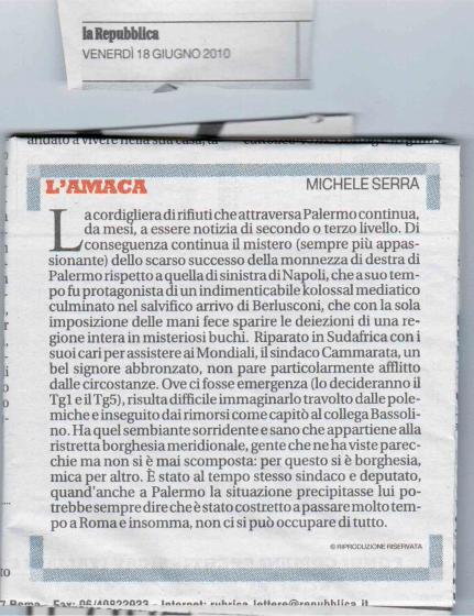 Mi riferivo all’argomento INFORMAZIONE. Dovreste essere indignati del fatto che da un lato si dice che a Napoli non c’è più l’emergenza e che dall’altro NON si dice che c’è una forte emergenza a Palermo. Non credo sia complicato da perseguire come obiettvo per un grosso partito come il PD.